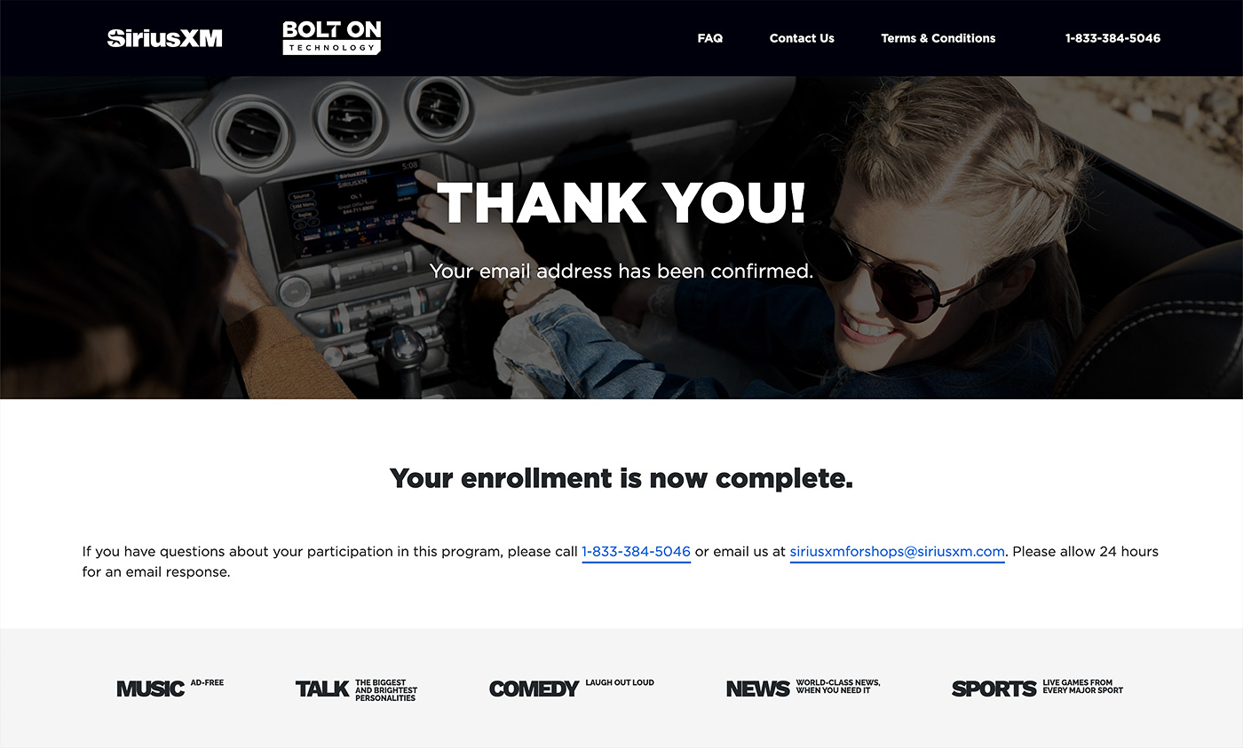 Thank you for your interest in the SiriusXM for Shop Customers program.